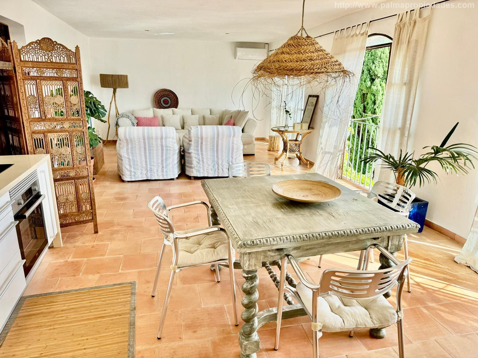 🌳 Desde el salón se accede a una terraza-jardín privada y a la piscina, ideal para disfrutar del buen clima mallorquín